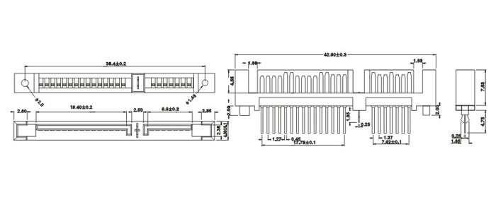 2.54mm间距排针连接器-三排