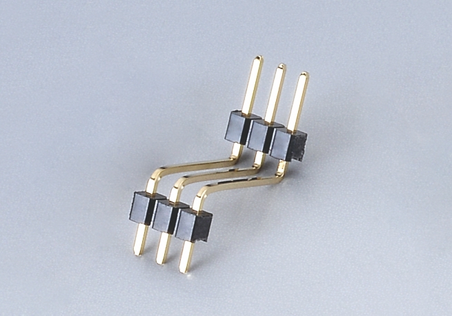 2.54mm间距排针连接器 单排双层塑胶 90° 插板