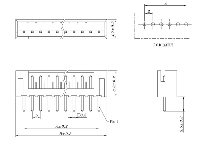 2.54mm间距排针连接器 单排
