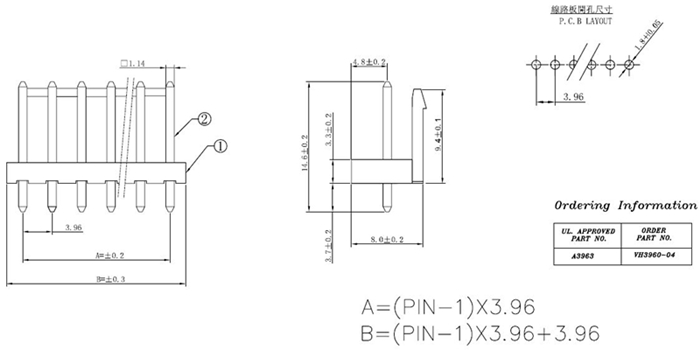 2.54mm间距排针连接器-三排