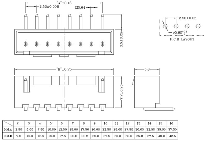 2.54mm间距排针连接器-三排