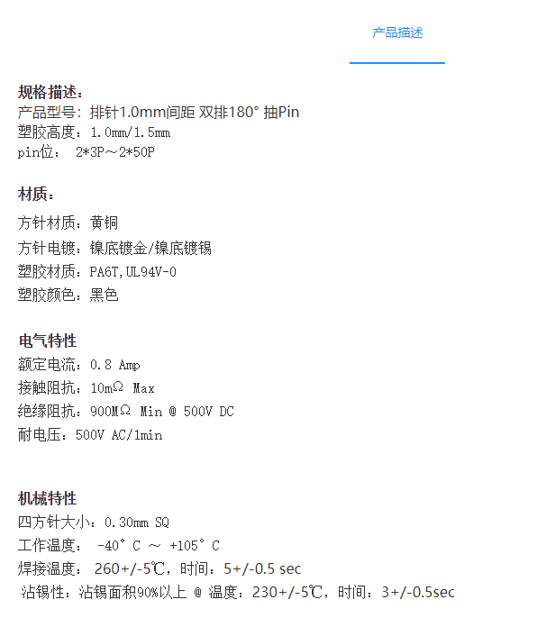 1.0mm间距排针连接器-双排180° 双塑胶