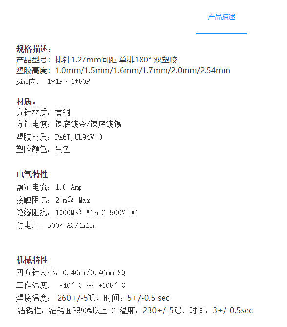 1.27mm间距排针连接器-双塑胶_排距1.27