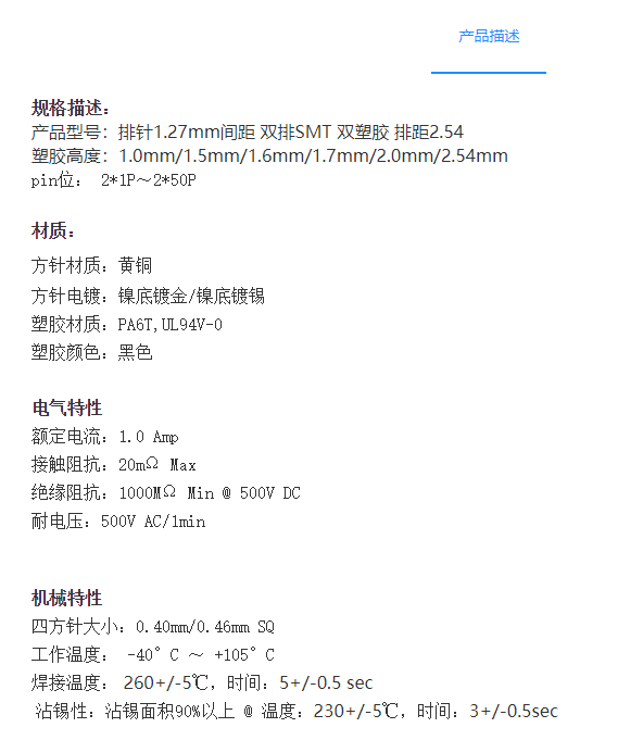 1.27mm间距排针连接器-双塑胶_排距1.27