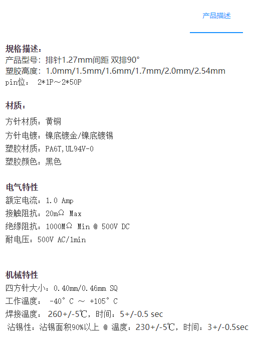 1.27mm间距排针连接器-双排卧贴 单塑胶