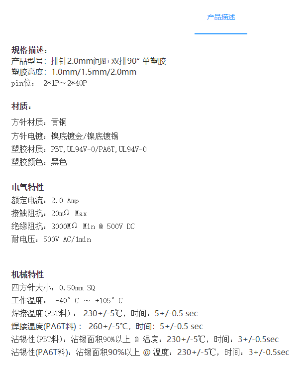 2.0mm间距排针连接器-双排SMT 双塑胶